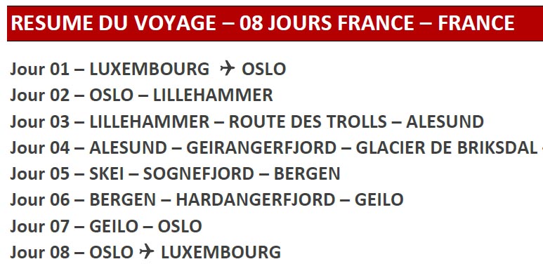 par SMS au 06 07 60 47 23 "Je suis intéressé par le circuit en Norvège, voici mon mail : nom.prenom@fournisseur.fr" à l'inscription une copie de votre pièce d'identité ou passeport sera demandée |